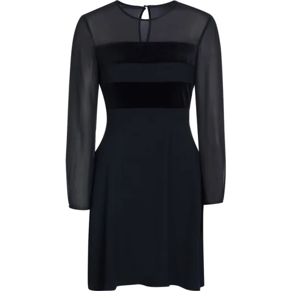 100% Polyester; Tommy Hilfiger-jurk; Model: WW0WW24064 094; Hoogwaardige afwerking; Nauwsluitend; Ronde hals, lange mouw; Ritssluiting aan de zijkant, knopen aan de hals en manchetten; fluwelen bekleding; Iets uitlopende rok tot halverwege de dij; Tommy Hilfiger-logodetails