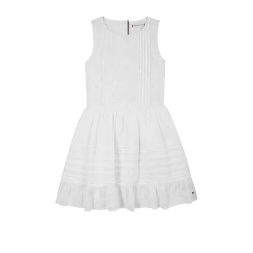 Deze jurk van Tommy Hilfiger is perfect voor meisjes. Het model is mouwloos en gemaakt van 100% katoen. Met een ronde hals en een blinde ritssluiting is het stijlvol afgewerkt met plooien en broderie.