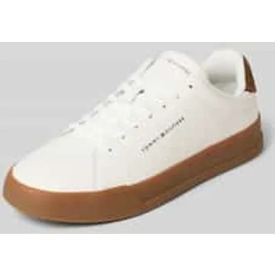 Lage herensneakers van Tommy Hilfiger voor heren;Model 'TH Court';Look: effen;Punt van de schoen: afgerond;Hakvorm: plat;Applicatie: Label in reliëf, logo-applicatie, labelprint;Details: Contrasterende details;Sluiting: Vetersluiting;Zool: gestructureerd;materiaal: echt leder