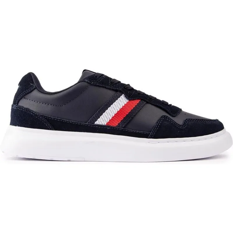 Verfris je outfit en voeg een sportieve stijl toe aan je casual looks met de Court-stijl sneakers van Tommy Hilfiger. De designer sneakers beschikken over een zacht leren bovendeel met suède overlays en een corporate stripe detaillering, gecombineerd met een lichtgewicht zool en een gevoerd voetbed.
