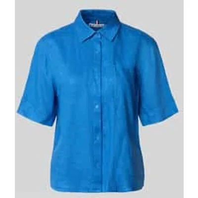 dames linnen blouse van Tommy Hilfiger;Look: effen/All-over motief;Pasvorm: loose fit;kraagmodel: overhemdkraag;Applicatie: gestikt logo;Details: achterpas met cacharelplooi;Sluiting: enkelrijige knoopsluiting;mouwvorm: korte mouw;Tassen: borstzak;Materiaal: puur linnen