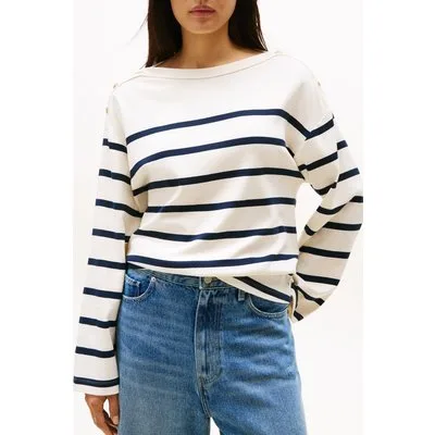 Tommy Hilfiger Lwk Gold Button Boat Regular Fit Striped Top, Navy Blue Prijzen