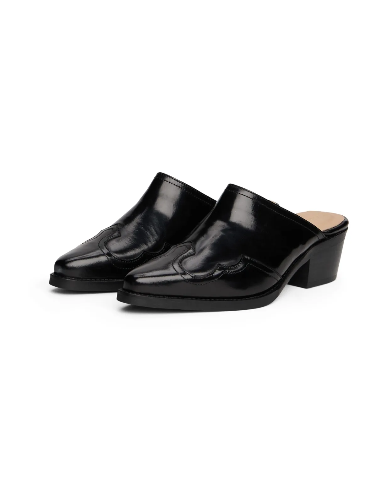 Design: Gevoerd, Hak met laagjes look, Siernaad; Type sluiting: Slip; Type hak: Blokhak; Materiaal: Leer; Motief: Effen; Materiaal: Lak; Schoenneus: Spitse neus; Extra's: Glanzend, Flexibele zool; Hakhoogte: Middelhoge hak (3-7 cm)