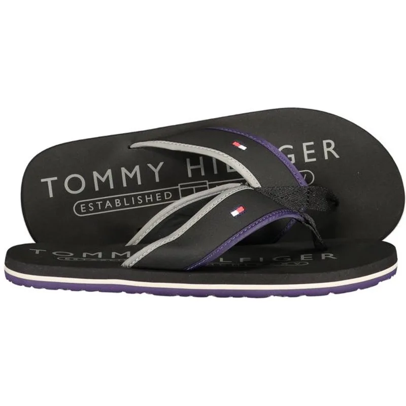 Verhoog je zomerse stijl met deze TOMMY HILFIGER slippers. Een strakke zwarte basis wordt aangevuld met opvallende paarse accenten en het iconische logo voor een gedurfde uitstraling op het strand of in de stad. Gemaakt van een mix van polyester en polyurethaan, zijn deze slippers net zo duurzaam als trendy. Stap in de belichaming van casual luxe. – Materiaal: 50% Polyester, 50% Polyurethaan – Land van herkomst: China – Kleur: Zwart