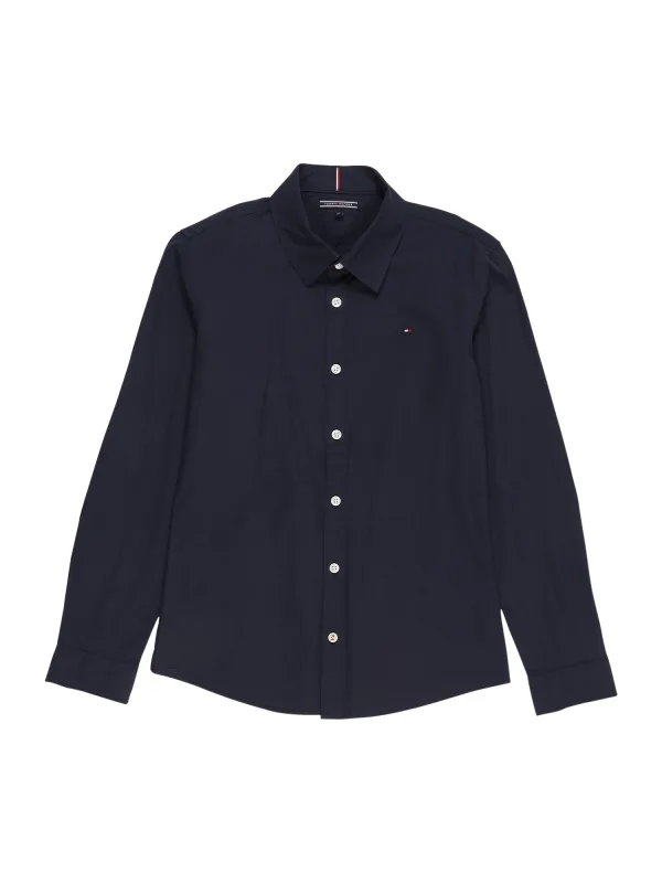 Dit overhemd voor jongens van Tommy Hilfiger is gemaakt van een duurzame stretchkatoenmix en heeft een logo-opdruk. Het model heeft een klassieke kraag en lange mouwen. Het overhemd heeft een knoopsluiting.