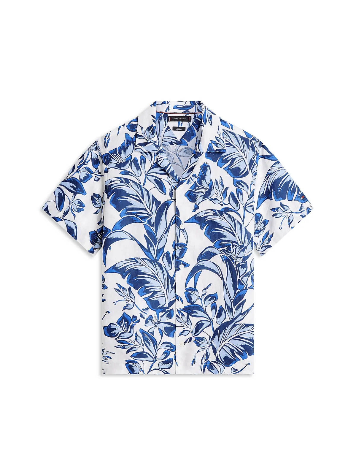 heren vrijetijdsoverhemd van Tommy Hilfiger;look: all-over motief;Pasvorm: regular fit;Overhemdkraag: cubaanse kraag;Knoopsluiting: doorlopend;Motief: botanisch;Details: achterpas;mouwvorm: korte mouw;Materiaal: puur linnen