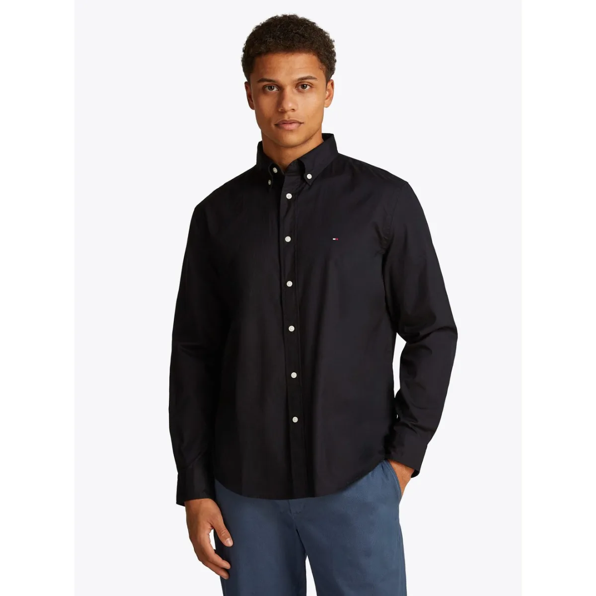 Op zoek naar hoge kwaliteit Heren Overhemden om je kledingkast mee op te vullen? Met deze Overhemd van Tommy Hilfiger heb je altijd een goed Overhemd in huis. De Tommy Hilfiger Poplin Overhemd Flex Zwart is heel geschikt!Tommy Hilfiger Poplin Overhemd Flex Zwart in de kleur Zwart met een pasvorm Regular-fit is gemaakt van Katoen met een Effen dessin en Lange mouw