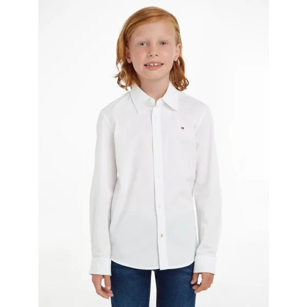 Overhemd van Tommy Hilfiger voor kinderen;Mix van katoen en elastaan;Recht model;Kentkraag;Knoopsluiting;Gestikt logo;Sportmanchetten;Ruglengte bij maat 140: 56 cm;Schouderbreedte bij maat 140: 37 cm;Mouwlengte bij maat 140: 50 cm