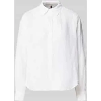 dames blouse van Tommy Hilfiger;look: effen kleuren;Pasvorm: Oversized;kraagmodel: overhemdkraag;Applicatie: labelstitching, logo-applicatie;Sluiting: knoopsluiting;Mouwvorm: lange mouw;mouwboord: manchet;Materiaal: puur linnen