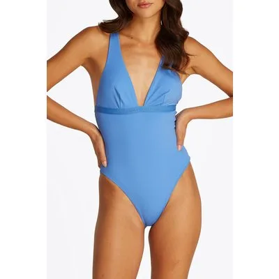 Tommy Hilfiger Plunge One Piece Swimsuit Azure