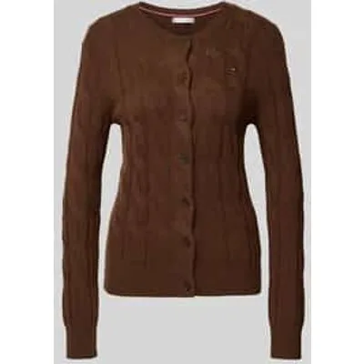 Gebreid damesjack van Tommy Hilfiger;Look: effen;Pasvorm: Regular fit ;Sluiting: enkele knoopsluiting;Motief: Kabelpatroon;Applicatie: Gestikt logo;Hals: ronde hals;Mouwvorm: lange mouwen;Mouwboord: geribd;Rompzoom: geribd;Materiaalverwerking: Knitwear;Materiaal: zuivere wol;Ruglengte bij maat S: 57 cm;Borstomvang bij maat S: 46 cm;Mouwlengte bij maat S: 62 cm