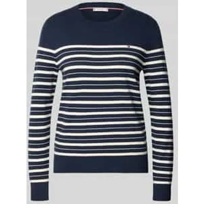 Gebreide damestrui van Tommy Hilfiger;Look: effen/all-over motief/gemêleerd;Pasvorm: Regular fit ;Motief: gestreept;Applicatie: Gestikt logo;Kraagmodel: Hoge ronde hals;Mouwvorm: lange mouwen;Mouwboord: geribd;Rompzoom: geribd;Materiaalverwerking: Ribtricot;Materiaal: Katoenmix
