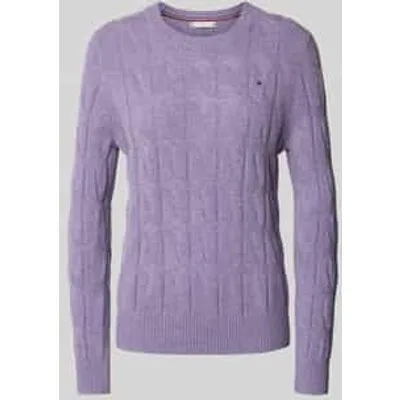 Gebreide damestrui van Tommy Hilfiger;Look: mêlee;Pasvorm: Regular fit;Motief: Kabelpatroon;Applicatie: Gestikt logo;Hals: ronde hals;Mouwvorm: lange mouwen;Mouwboord: geribd;Rompzoom: geribd;Materiaalverwerking: Knitwear;Materiaal: zuivere wol;Ruglengte bij maat S: 59 cm;Borstomvang bij maat S: 45 cm;Mouwlengte bij maat S: 59 cm