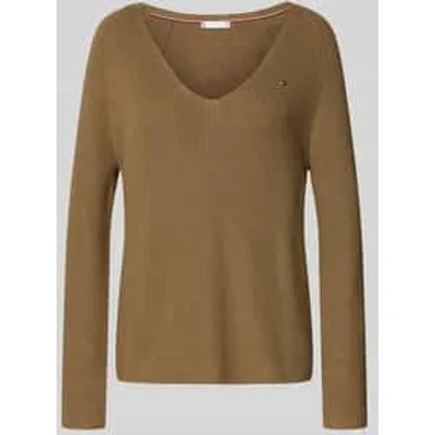 Gebreide damestrui van Tommy Hilfiger;Look: effen/all-over motief;Pasvorm: Regular fit ;Motief: gestreept;Applicatie: Gestikt logo;Hals: V-hals;Mouwvorm: lange mouwen, raglanmouwen;Materiaalverwerking: Ribtricot;Materiaal: puur katoen