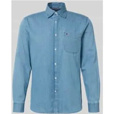 Jeansoverhemd van Tommy Hilfiger voor heren;Look: Denim;Pasvorm: Regular fit;Overhemdkraag: Haaikraag;Sluiting: enkele knoopsluiting;Applicatie: Gestikt logo;Mouwvorm: lange mouwen;Mouwboord: Manchet;Rompzoom: afgerond;Type manchet: Sportmanchet;Materiaal: puur katoen