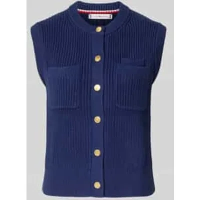 Mouwloos damesvest van Tommy Hilfiger;Look: effen;Pasvorm: Regular fit ;Kraagmodel: Hoge ronde hals;Sluiting: enkele knoopsluiting;Applicatie: Logo-applicatie;Zakken: Borstzakken;Materiaalverwerking: Knitwear;Materiaal: puur katoen