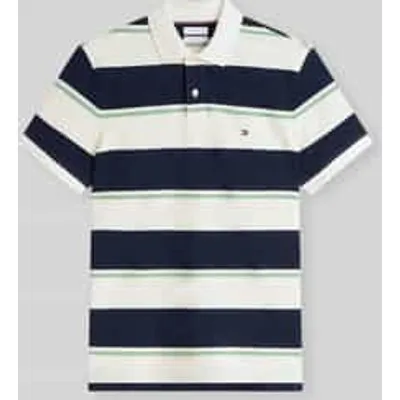 heren poloshirt van Tommy Hilfiger;look: all-over motief;Pasvorm: regular fit;Applicatie: gestikt logo;Patroon: gestreept;kraagmodel: polokraag;mouwvorm: korte mouw;Materiaal: katoenmix