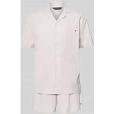 Herenpyjama van Tommy Hilfiger;Look: All-over motief;Pasvorm: Regular fit ;Applicatie: Gestikt logo;Kraagmodel: Reverskraag;Sluiting: enkele knoopsluiting;Mouwvorm: korte mouwen;Band: elastisch;Tweedelig: ja;Zakken: Borstzak;Materiaalverwerking: Oxford;Materiaal: puur katoen