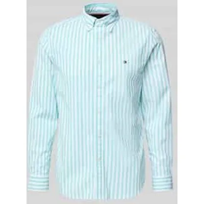 Heren vrijetijdshemd van Tommy Hilfiger;Look: All-over motief;Pasvorm: Regular Fit;Overhemdkraag: Button-downkraag;Knoopsluiting: doorlopend;Patroon: gestreept;Applicatie: Gestikt logo;Details: Rugpas met stolpplooi;Sluiting: enkelvoudige knoopsluiting;Mouwvorm: lange mouw;Mouwboord: Manchet;Rompzoom: afgerond;Manchettype: 1-knoopsmanchet, afgerond;Materiaalverwerking: Popeline;Materiaal: puur katoen