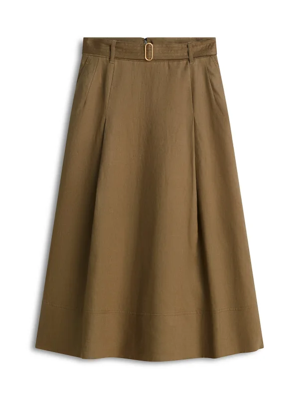 Design: Met riem; Type sluiting: Ritssluiting; Materiaal: Linnen; Motief: Effen; Rokvorm: A-lijn rok; Details: Plooien; Extra's: Met textuur; Lengte: 3/4 lengte; Pasvorm: Normale pasvorm