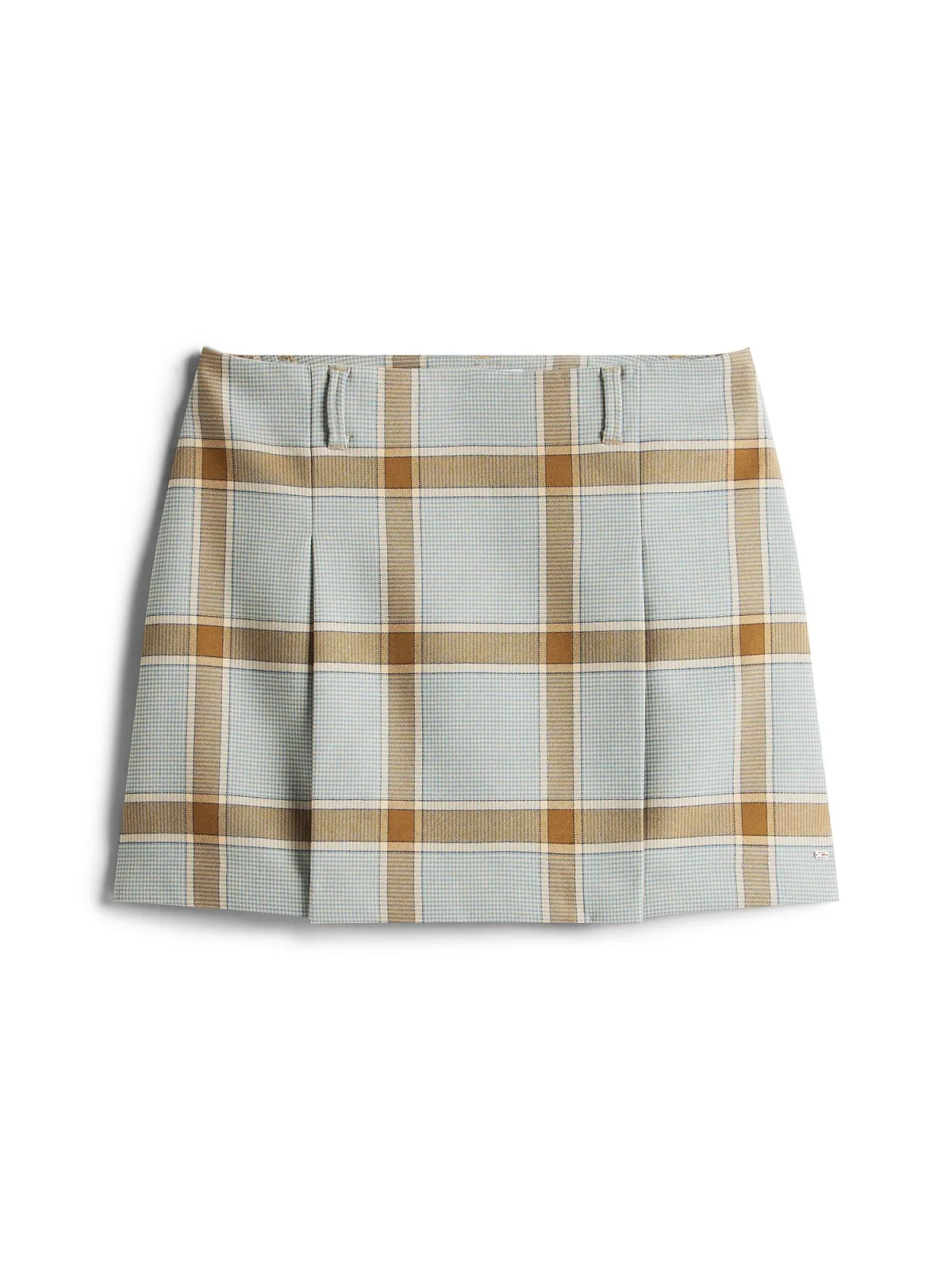 Materiaal: Wol; Motief: Geruit; Rokvorm: Minirok; Details: Plooien; Extra's: Riemlussen; Lengte: Kort/mini; Pasvorm: Normale pasvorm
