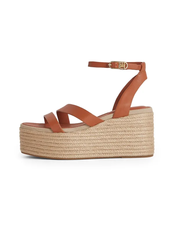 Design: Profielzolen, Verstelbare riemen, Hak/zool met raffia-look; Type sluiting: Riemsluiting; Type hak: Sleehak; Materiaal: Leer; Motief: Effen; Plateau: Met plateau; Materiaal: Glad leer; Schoenneus: Open toe; Extra’s: Label plaatje, Op staal naden, Gladde stof; Hakhoogte: Middelhoge hak (3-7 cm)