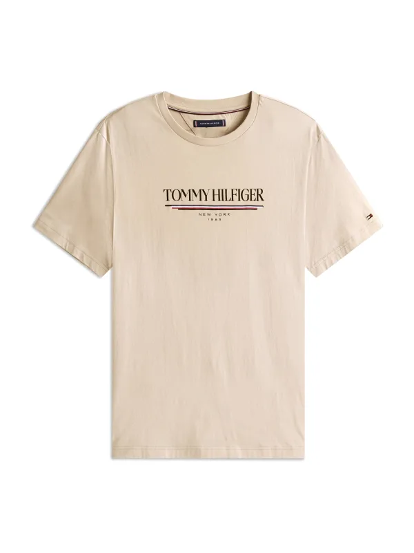 Specificaties: TOMMY HILFIGER Shirt ‘BRAND LOVE’ taupe / marine / rood / wit