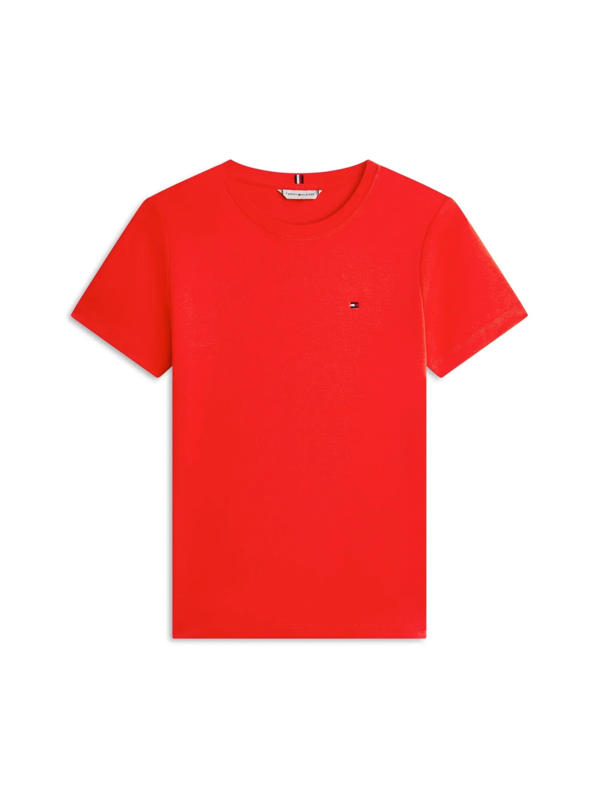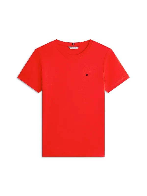 Dames T-shirt van Tommy Hilfiger;Look: effen;Pasvorm: Slim fit;Applicatie: Gestikt logo;Hals: Ronde hals;Mouwvorm: korte mouw;Materiaalverwerking: Jersey;Materiaal: puur katoen