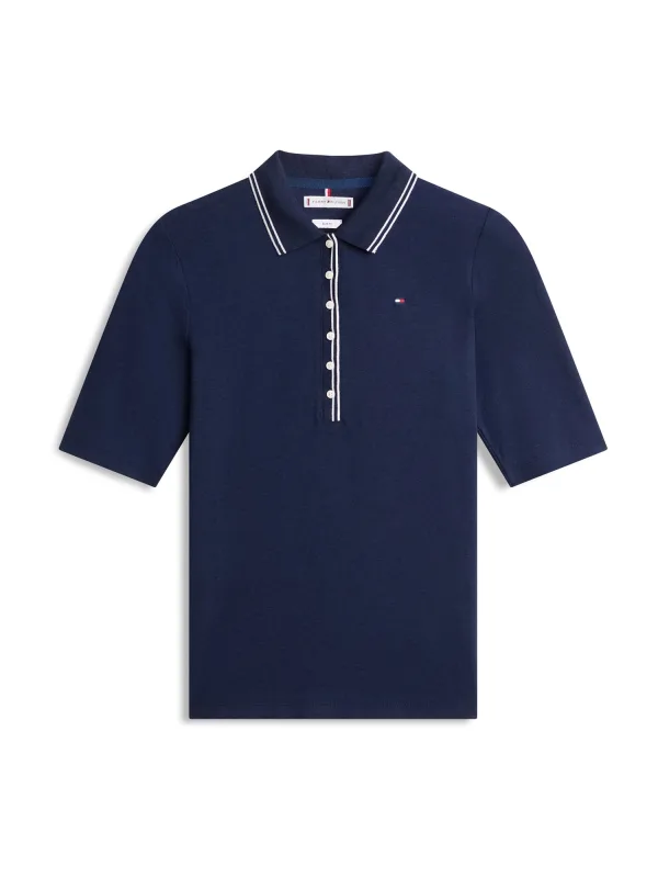 Design: Gevoerde zoom/rand, Geribbelde kraag, Contrasterende inserts; Type sluiting: Knoopsluiting; Materiaal: Jersey; Halstype: Polokraag; Motief: Effen; Details: Borduursels; Extra's: Label borduurwerk, Voelt zacht aan; Pasvorm: Slanke pasvorm; Armlengte: Halve mouw; Lengte: Normale lengte
