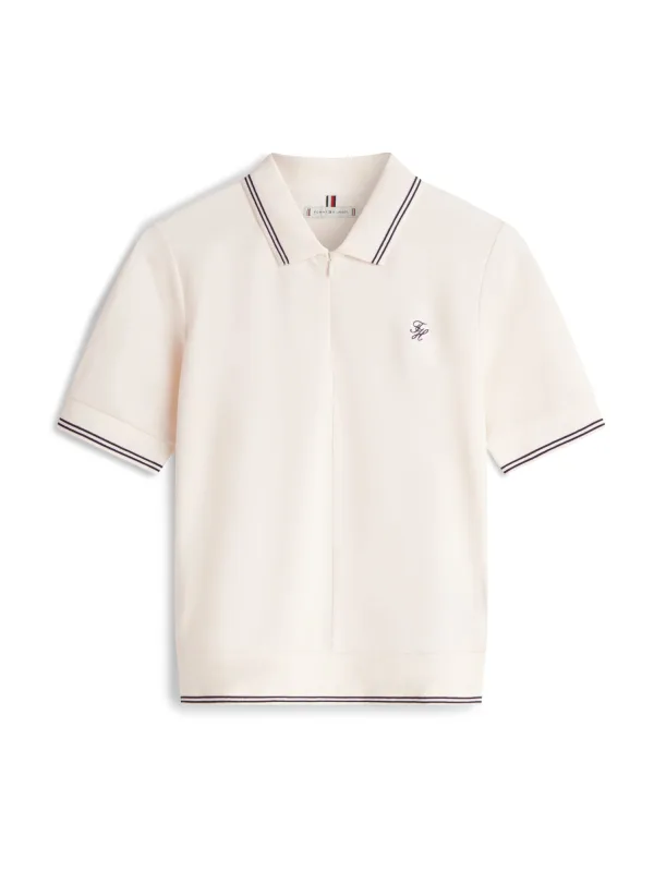 Design: Geribbelde kraag, Rechte zoom, Geribd ceintuurtje, Halve rits; Type sluiting: Ritssluiting; Materiaal: Lyocell; Halstype: Polokraag; Motief: Effen; Details: Borduursels; Extra's: Label borduurwerk, Op staal naden, Voelt zacht aan, Piqué; Pasvorm: Normale pasvorm; Armlengte: Kwartmouw; Lengte: Normale lengte