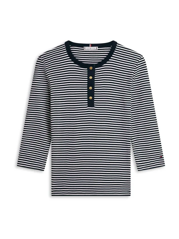 Design: Gevoerde zoom/rand, Geribbelde kraag, Knop placket; Type sluiting: Knoopsluiting; Materiaal: Jersey; Halstype: Henley hals; Motief: Gestreept; Details: Borduursels; Extra's: All-over patroon, Label borduurwerk, Voelt zacht aan; Pasvorm: Slanke pasvorm; Armlengte: Driekwart mouw; Lengte: Normale lengte