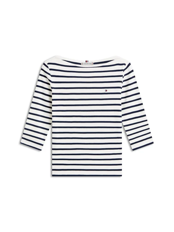 Design: Gevoerde zoom/rand, Ingelegde kraag; Materiaal: Jersey; Halstype: Boothals; Motief: Gestreept; Details: Borduursels; Extra's: All-over patroon, Label borduurwerk, Op staal naden; Pasvorm: Slanke pasvorm; Armlengte: Driekwart mouw; Lengte: Normale lengte
