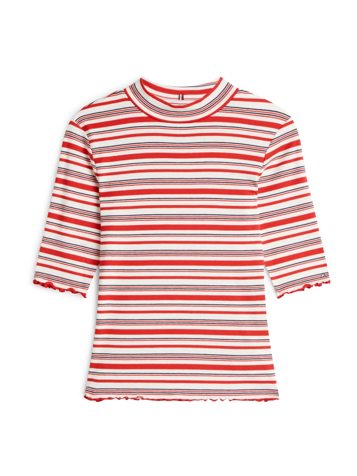 Design: Geribbelde kraag, Geschulpte zoom; Materiaal: Jersey; Halstype: Opstaande kraag; Motief: Gestreept; Extra's: All-over patroon, Voelt zacht aan; Pasvorm: Normale pasvorm; Armlengte: Halve mouw; Lengte: Normale lengte