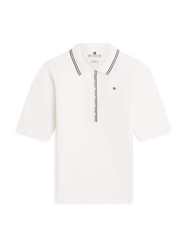 Design: Gevoerde zoom/rand, Geribbelde kraag, Knop placket; Type sluiting: Knoopsluiting; Materiaal: Jersey; Halstype: Polokraag; Motief: Effen; Details: Borduursels; Extra's: Voelt zacht aan, Huidvriendelijk materiaal; Pasvorm: Slanke pasvorm; Armlengte: Halve mouw; Lengte: Normale lengte