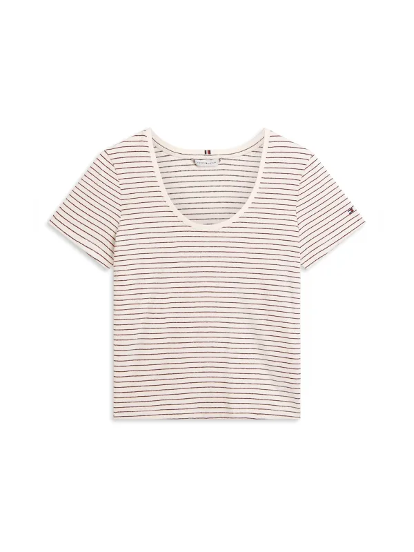 Design: Gevoerde zoom/rand, Recht model; Materiaal: Jersey; Halstype: Ronde hals; Motief: Gestreept; Details: Borduursels; Extra's: All-over patroon, Voelt zacht aan; Pasvorm: Normale pasvorm; Armlengte: Kwartmouw; Lengte: Normale lengte