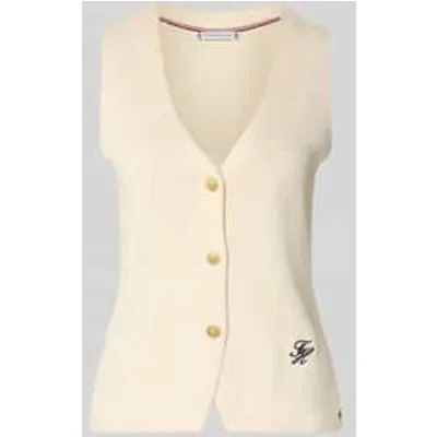 dames bodywarmer van Tommy Hilfiger;look: effen;pasvorm: slim fit;Sluiting: enkele knoopsluiting;Applicatie: Gestikt logo;Materiaalverwerking: Knitwear;Materiaal: puur katoen