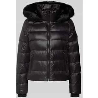 Donsjack voor dames van Tommy Hilfiger;Look: glanzend;Pasvorm: Slim fit;Kraagmodel: Opstaande kraag met capuchon en imitatiebont;Sluiting: Ritssluiting;Applicatie: Labelpatch;Mouwvorm: lange mouwen;Functie: waterafstotend;Zakken: Ritszakken