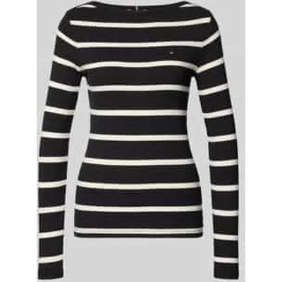 Damesshirt met lange mouwen van Tommy Hilfiger;Look: meerkleurig;Pasvorm: Slim fit;Motief: gestreept;Applicatie: Gestikt logo;Hals: Boothals;Mouwvorm: lange mouwen;Materiaalverwerking: RIB;Materiaal: Viscosemix