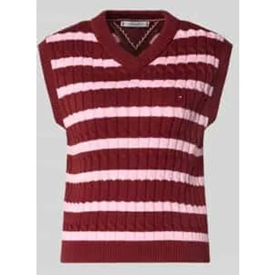 Damesspencer van Tommy Hilfiger;Look: effen;Pasvorm: Slim fit;Motief: gestreept;Applicatie: Logodetail;Kraagmodel: Hoge ronde hals;Hals: V-hals;Rompzoom: geribd;Materiaalverwerking: Knitwear;Materiaal: puur katoen