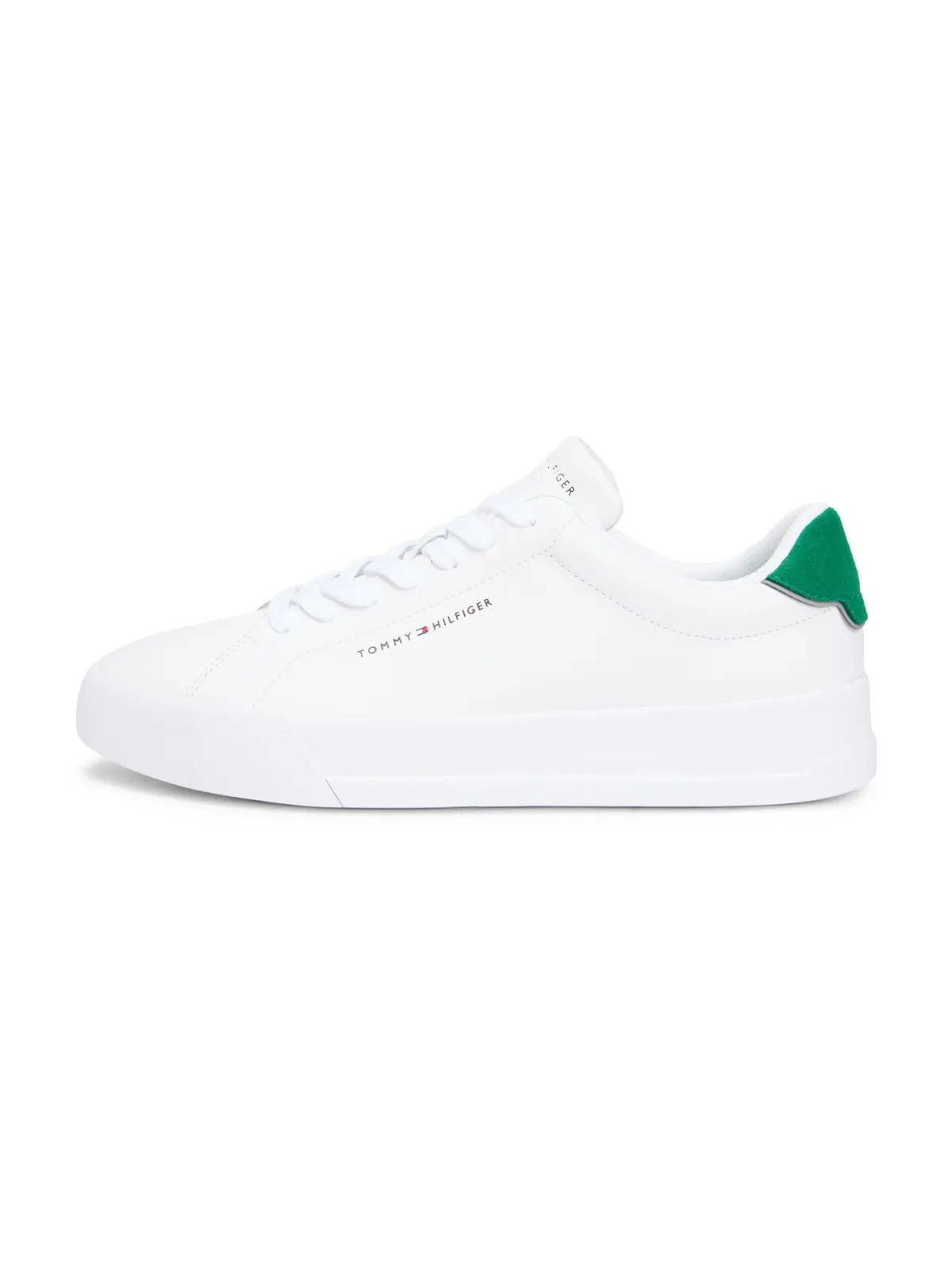 Stap in de schijnwerpers met deze onberispelijke TOMMY HILFIGER sneakers. Met contrasterende groene accenten en het iconische logo zijn ze ontworpen voor degenen die trends zetten in plaats van ze te volgen. Bovendien garandeert de uitneembare binnenzool comfort onderweg. Durf jij een statement te maken? Veters je een paar van deze aan en loop met vertrouwen. Kleur: Bianco Materiaal: 30% Polyester, 30% Leer, 40% Polyurethaan Land van herkomst: China