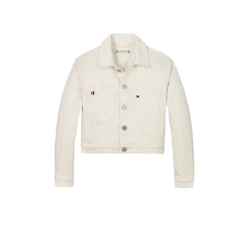Deze witte spijkerjas van Tommy Hilfiger is ideaal voor meisjes. De jas heeft een klassieke kraag, lange mouwen en een knoopsluiting. De borstzakken maken het ontwerp compleet. Perfect voor elke casual outfit.