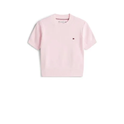 Deze Tommy Hilfiger sweater heeft korte mouwen en een ronde hals. De sweater is gemaakt van 100% polyester. Met rechte mouwen en een chenille look draag je deze makkelijk op al jouw outfits.