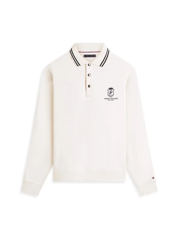 Design: Gevoerde zoom/rand, Geribd ceintuurtje, Contrasterende inserts; Type sluiting: Knoopsluiting; Materiaal: Sweatstof; Halstype: Polokraag; Motief: Logoprint; Extra's: Label borduurwerk, Op staal naden; Pasvorm: Normale pasvorm; Armlengte: Lange mouw