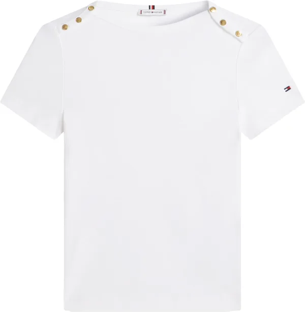 Tommy Hilfiger T-shirt Gold Button Slimfit Off White dames