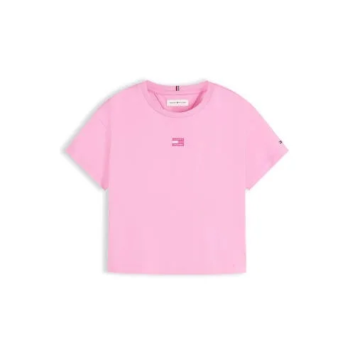 Dit roze Tommy Hilfiger meisjes T-shirt is een praktisch basisitem voor elke dag. Het effen ontwerp past gemakkelijk bij verschillende outfits en de korte mouwen maken het geschikt voor school, spelen of een uitstapje. Gemaakt van 100% katoen voelt de stof soepel en zacht aan op de huid, zodat je kind zich vrij kan bewegen.Praktische details voor elke dag Gemaakt van 100% katoen voor een zachte touch en prettig draagcomfort Korte mouwen en een rechte mouwinzet voor veel bewegingsvrijheid Ronde hals die mooi aansluit zonder te strak te zitten Effen roze kleur, makkelijk te combineren met jeans, shorts of rok Korte lengte, staat goed op een hoge taille broek of rok Geschikt voor peuters, kleuters, schoolkinderen en tienersMakkelijk te stylen in de preppy stijlDit T-shirt past goed binnen een preppy stijl. Combineer het met een denim short in de zomer of met een chino en sneakers voor een verzorgde look. In de koudere maanden draag je er eenvoudig een vest of hoodie overheen, terwijl de ronde hals ook prettig is onder een jas of jack.Tommy Hilfiger als bekende naamTommy Hilfiger staat voor kinderkleding met een moderne uitstraling en een duidelijke signatuur. De ontwerpen sluiten aan op actuele trends en blijven tegelijk goed draagbaar, seizoen na seizoen. Zo haal je een T-shirt in huis dat vaak uit de kast gepakt kan worden.Een veelzijdig T-shirt dat moeiteloos in de dagelijkse garderobe past.