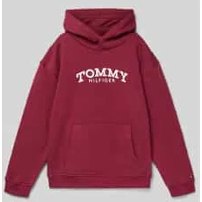 Kinderhoodie van Tommy Hilfiger Teens;Look: effen;Pasvorm: Regular fit;Applicatie: Labelprint, logostitching;Kraagmodel: Opstaande kraag en capuchon ;Mouwvorm: lange mouwen;Mouwboord: geribd;Rompzoom: geribd;Zakken: Kangoeroezak ;Materiaalverwerking: Sweat ;Materiaal: Katoenmix