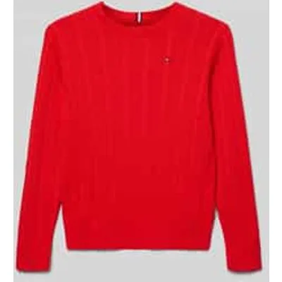 Kinderen pullover van Tommy Hilfiger Teens;look: effen/gestructureerd;Pasvorm: regular fit;Patroon: kabelpatroon;Applicatie: gestikt logo;hals: ronde hals;Mouwvorm: lange mouw;Mouwboord: geribd;rompzoom: geribd;Materiaalverwerking: kabelpatroon;Materiaal: puur katoen