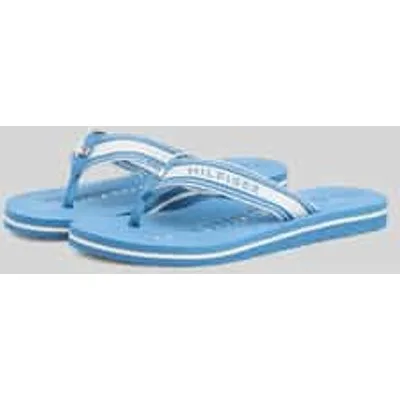 Dames teenslippers van Tommy Hilfiger;look: tweekleurig;Punt van de schoen: afgerond;Hakvorm: plat;Applicatie: logodetail