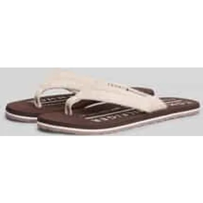 Heren teenslippers van Tommy Hilfiger;look: effen;Punt van de schoen: afgerond;Hakvorm: plat;Applicatie: labelprint;Sluiting: Comfortmodel/open;Materiaal: puur linnen