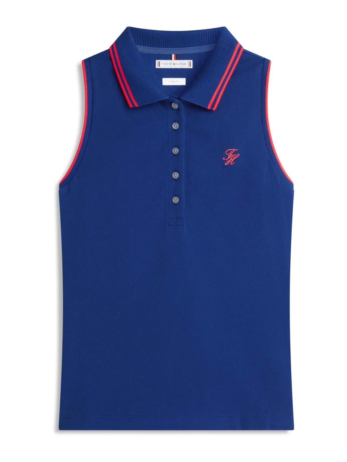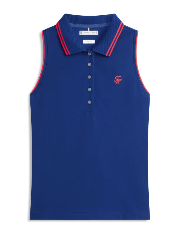 Design: Gevoerde zoom/rand, Geribbelde kraag, Knop placket, Contrasterende inserts; Materiaal: Katoen; Halstype: Polokraag; Motief: Logoprint; Details: Borduursels; Extra's: Label borduurwerk, Op staal naden, Voelt zacht aan, Piqué; Pasvorm: Slanke pasvorm; Armlengte: Mouwloos; Lengte: Normale lengte